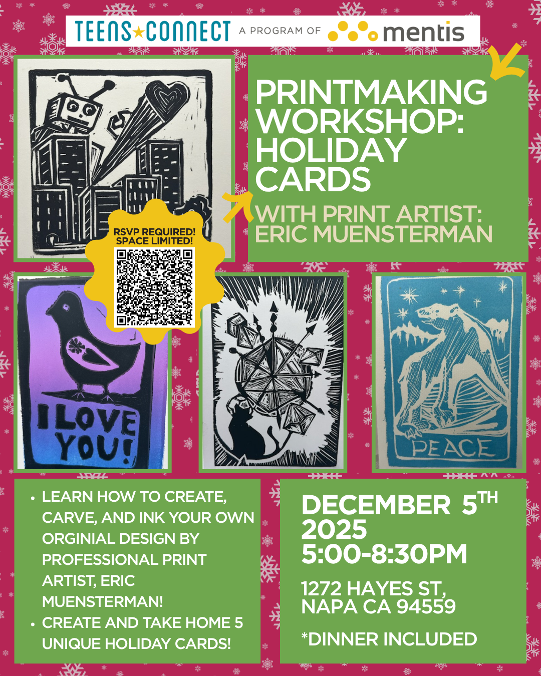 Hay varias maneras en que un adolescente del condado de Napa puede participar en nuestros eventos. ¡Una de las mejores es visitarnos! Pueden hacerlo asistiendo a uno de nuestros eventos mensuales de Teens Connect o siguiéndonos en Instagram @teensconnectnapa para mantenerse al día con las últimas novedades.