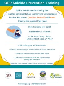 QPR Suicide Prevention Training + Add to Google Calendar + iCal / Outlook export Date May 27 2025 Expired! Time 5:00 pm - 6:30 pm